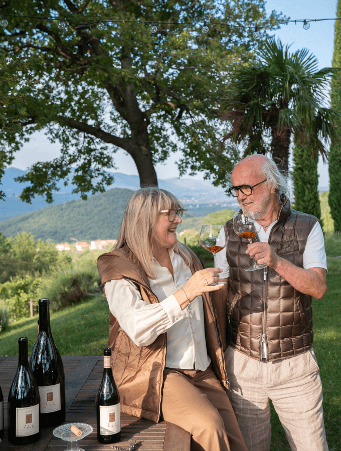 Na sončnem, visokem pobočju Čavna, nad vasico Kamnje, na domačem posestvu, imenovanem Grace, sva posadila vinograd rebule. Ta domača sorta nama je najljubša.